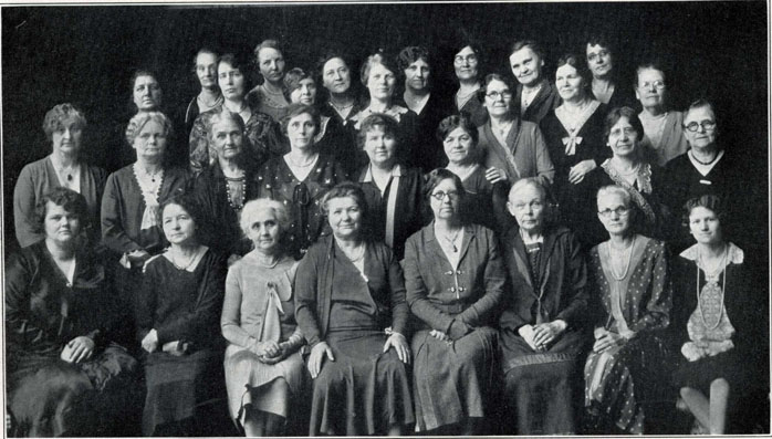 First Row: Miss Thcra Johnson, Mrs. Hilda Anderson, F. W. Goodney, Miss Eva Beck, Bernice Johnson, Amy Ekstrom, Mrs. Rueben Sandell, Miss Anna Johnson, Mrs. George Sweden
