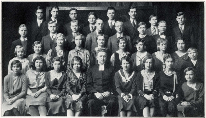 Second Row: Anna Nelson, Elizabeth Carlson, Thelma Johnson, Vera Senob, Rhoda Smith, Ruth W. Larson, Nina Mattson, Ruth Johnson, Virginia Johnson, Robert Larson.